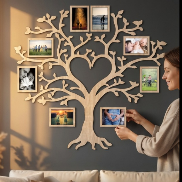 Vă prezentăm rama noastră foto unică din lemn pe perete - Tree , care vă va transforma cele mai frumoase amintiri într-o operă de artă frumoasă în casa dumneavoastră.