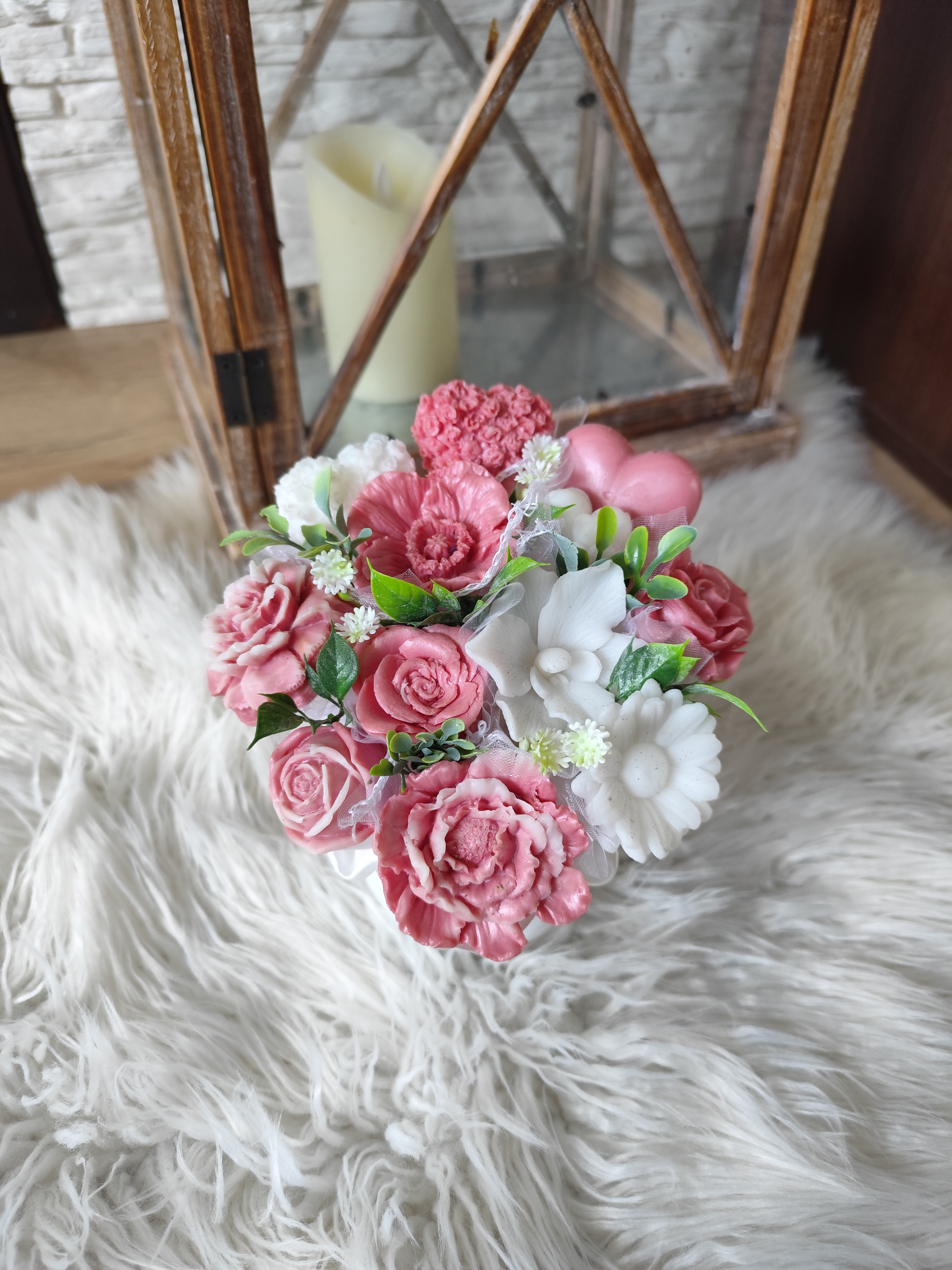 Un buchet de săpun este o decorațiune unică și un cadou original care combină frumusețea florilor cu caracterul practic al săpunului. Fiecare floare este realizată cu grijă din steatit, ceea ce asigură că buchetul își păstrează aspectul frumos și parfumul plăcut pentru o lungă perioadă de timp. O alegere ideală pentru zile de naștere, zile onomastice, nunți sau pur și simplu pentru distracție.
