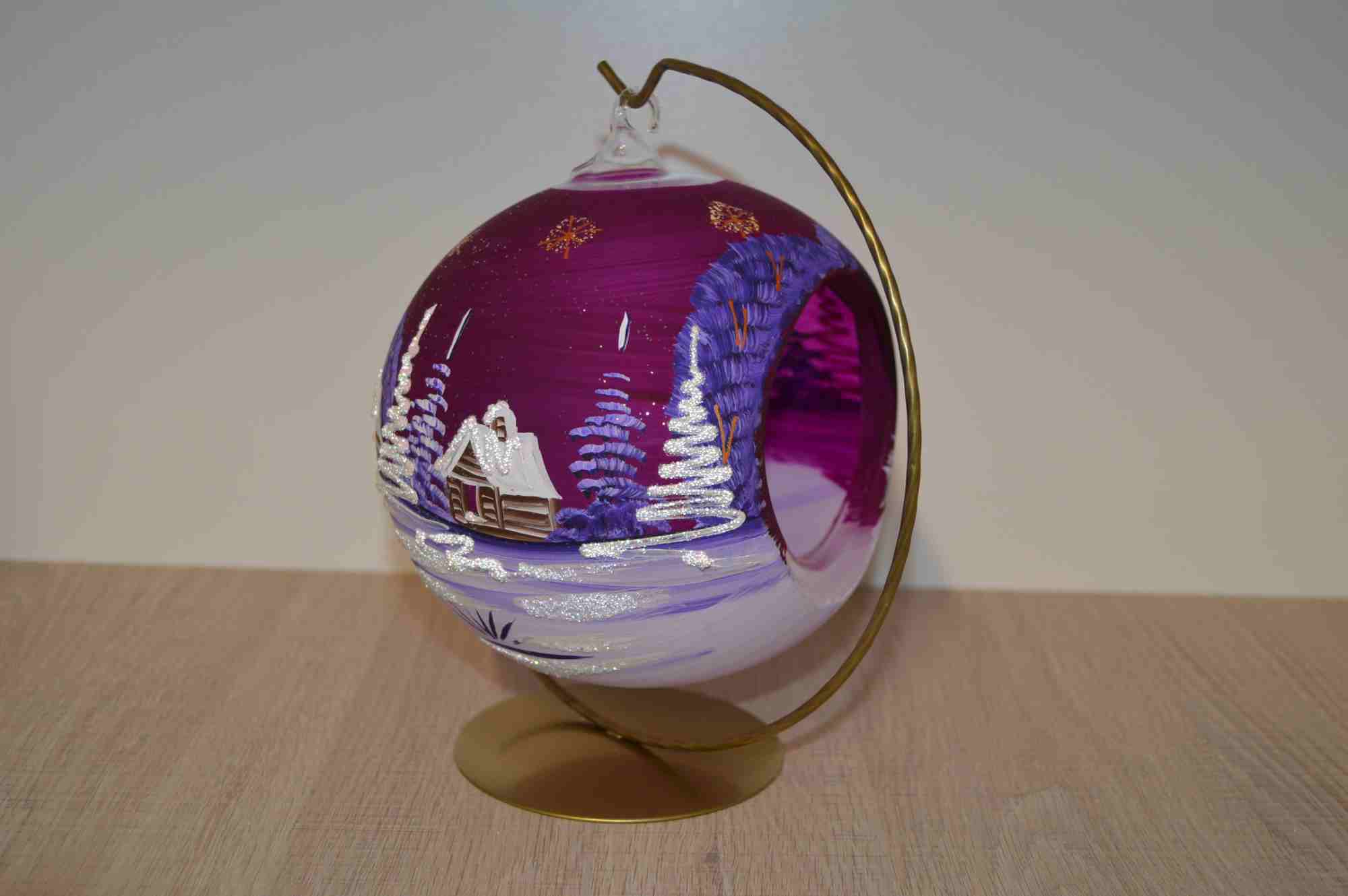 Suport pentru lumânări pictat manual cu suport, potrivit ca decor de Crăciun pentru interior.